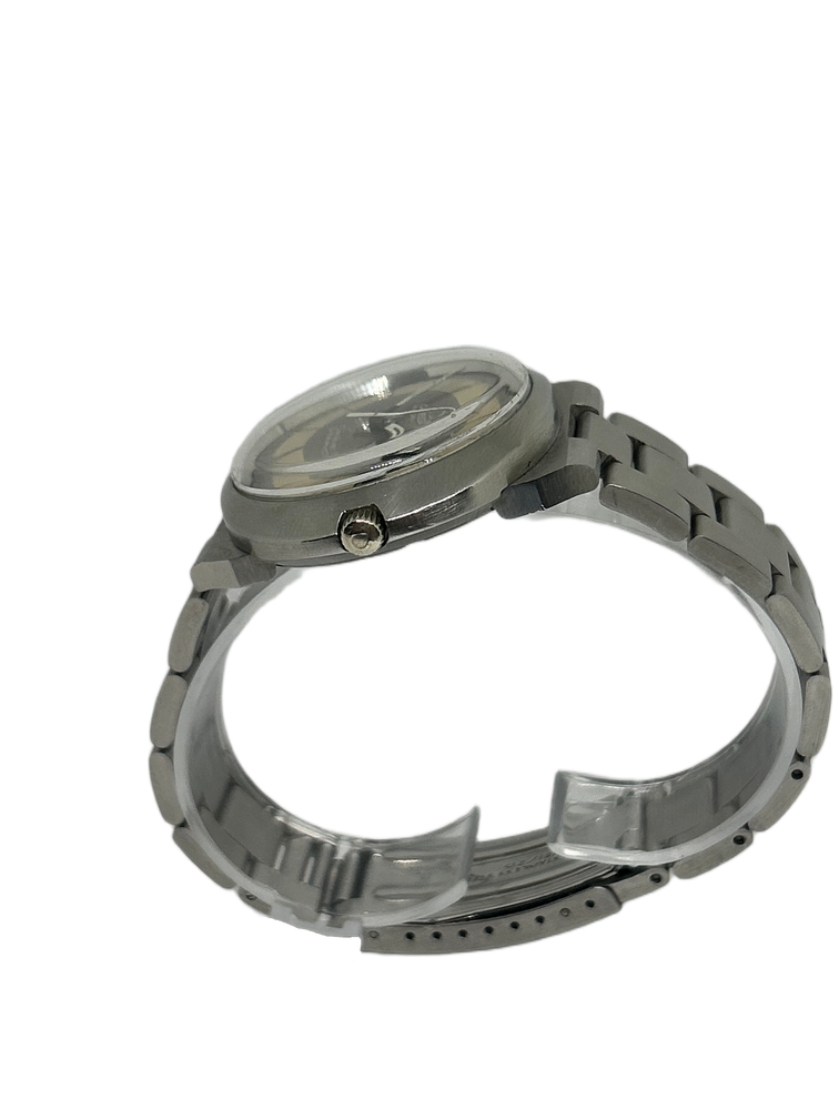 Condizione: Cassa e bracciale mai lucidati, qualche segno di usura sul cristallo e sul quadrante. Presenta una piccola curvatura sul quadrante, data dalla riapplicazione dello stesso dopo una revisione. La lancetta dei minuti ha una piccola crepa verso il centro. Nel complesso lo stato di conservazione è ottimo ed il movimento è perfettamente funzionante secondo gli standard vintage.